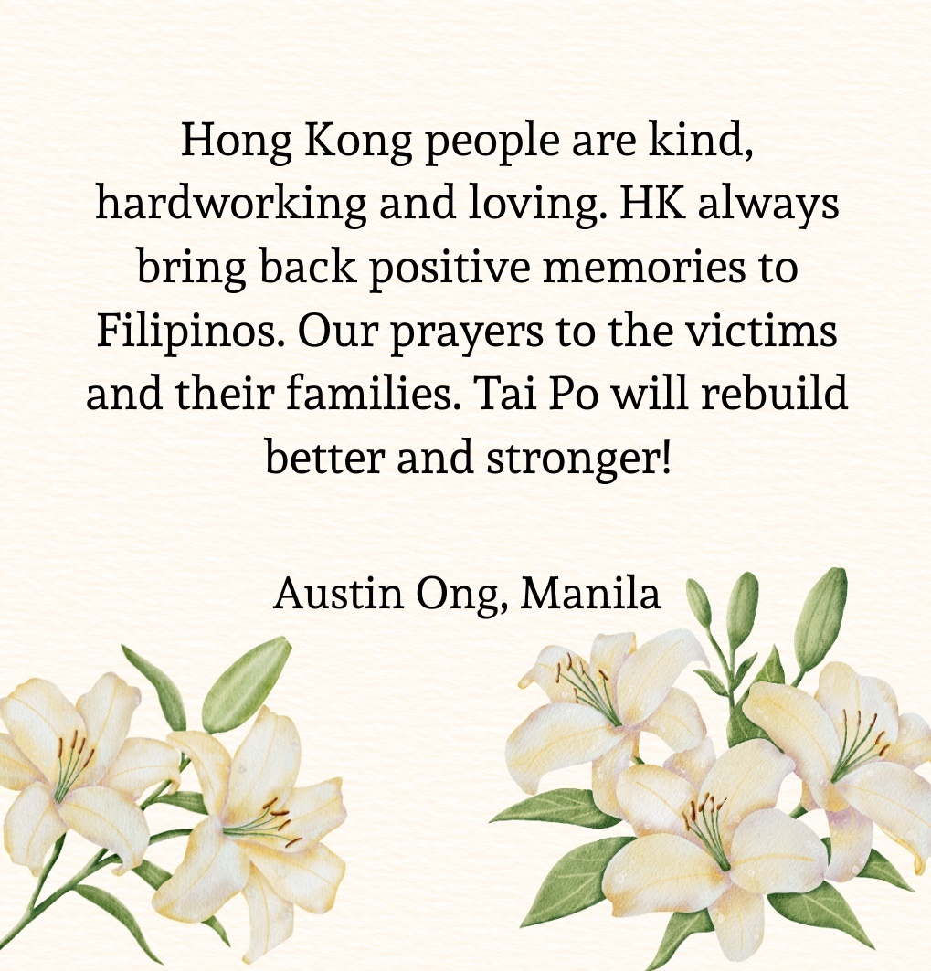 The Dragon Foundation and The DragoNation, in Hong Kong, the Chinese mainland and around the world, are deeply saddened by the devastating fire in Tai Po. We grieve for all those families, and the wider community, who are affected.